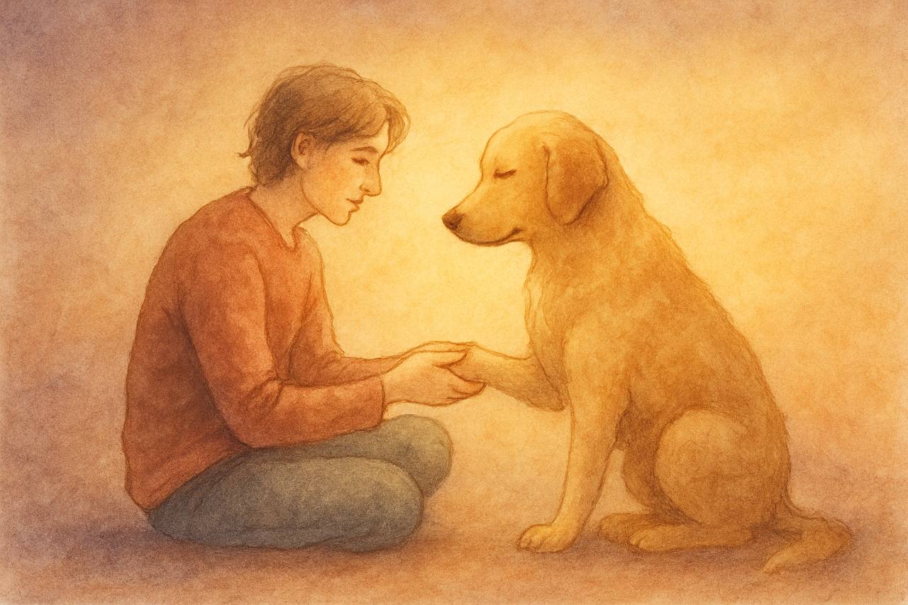 Умер человек. Его пес также рядом лег и тоже умер. И вот душа человека стоит перед золотыми вратами и рядом – душа собаки. У ворот – привратник.